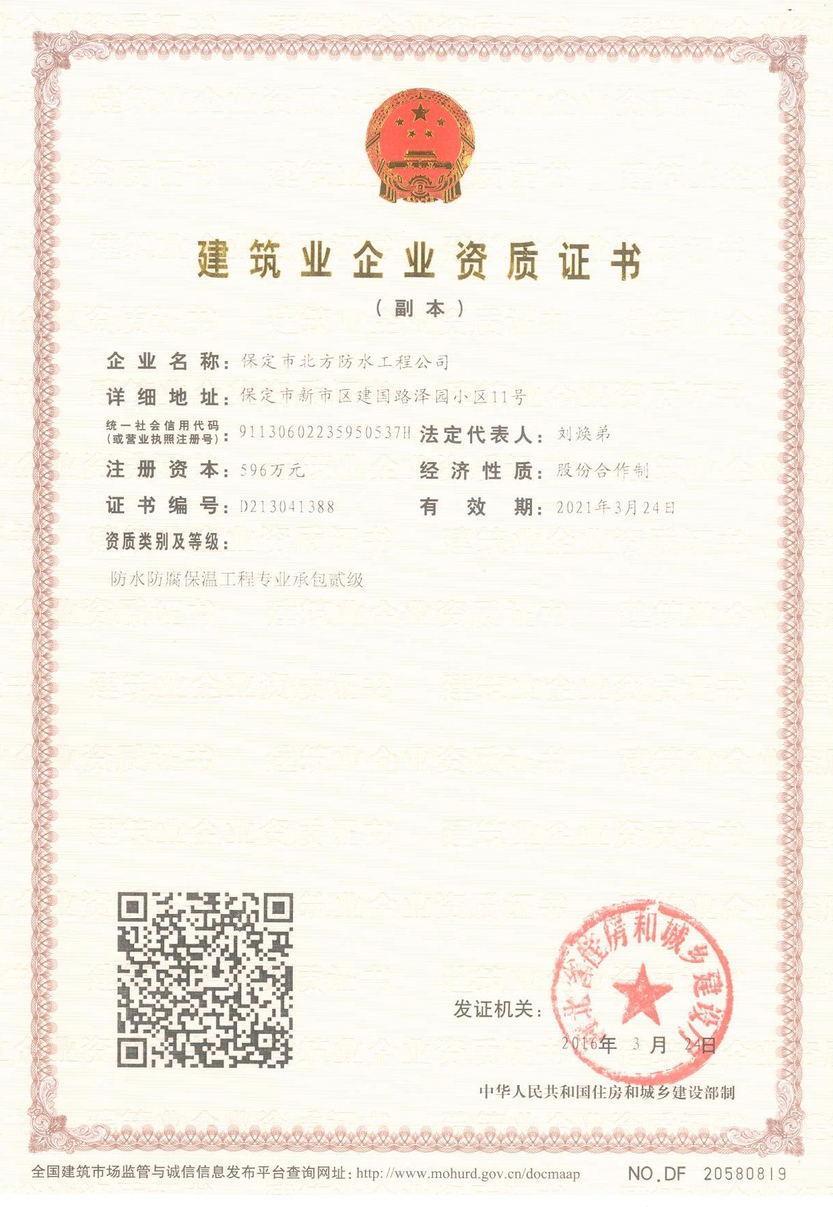 河北省建筑防水施工企業十強企業
