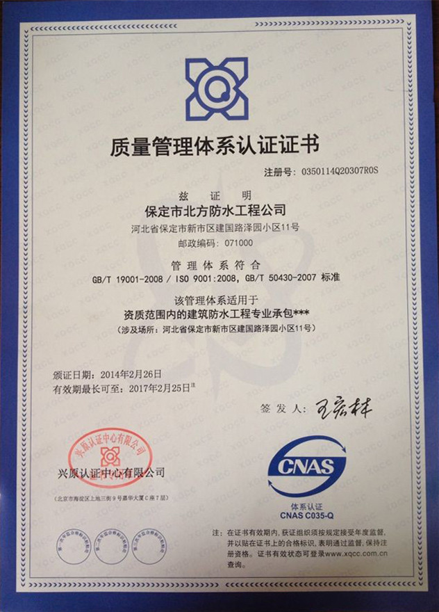 環渤海地區防水行業誠信企業