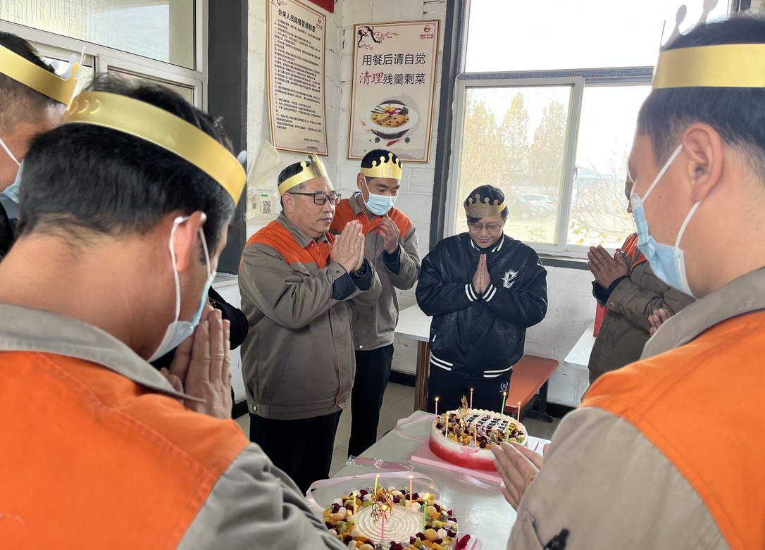 公司食堂準備了豐盛可口的飯菜,公司準備了生日蛋糕,董事長發(fā)表講話,并為過生日的同志送上生日祝福,公司員工聚在一起唱生日歌,分享生日蛋糕。大家都覺得十分幸福,因為我們是相親相愛一家人。